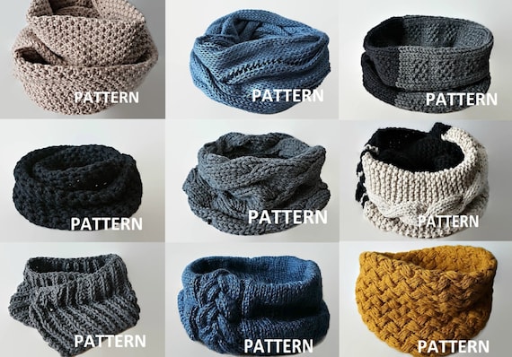 Knitting Pattern 9 Pdf Patterns Knit Infinity Scarf Pattern Etsy